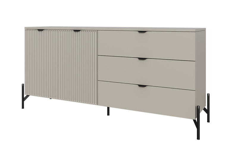 Комод «Нео» — это выразительное сочетание минимализма и архитектурной пластики. Его строгая геометрия смягчается ритмичной текстурой фасада, создавая эффект глубины и динамики.
